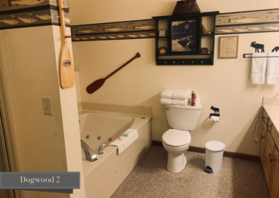 The cottages are large suites, that include a private sitting room with a TV, electric fireplace, and wet bar consisting of a refrigerator with ice in the freezer above, microwave, toaster, coffeemaker, plus the supplies to make coffee, tea, & hot chocolate. The sitting room sofa opens into a queen size sleeper should you have extra guests. Each cottage offers a spacious bedroom with a king-sized bed and a private window seat so you may enjoy the river view at any time. The cottages feature private baths. All include a whirlpool tub large enough for two, and a separate shower. Please scroll further for photos of how each cottage suite is set up.